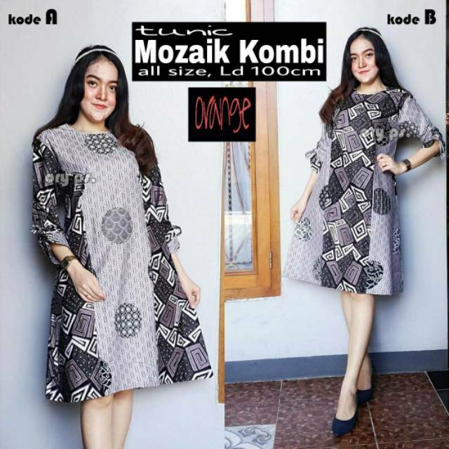 Dress Tunik Batik Mozaik Kombi Monochrome