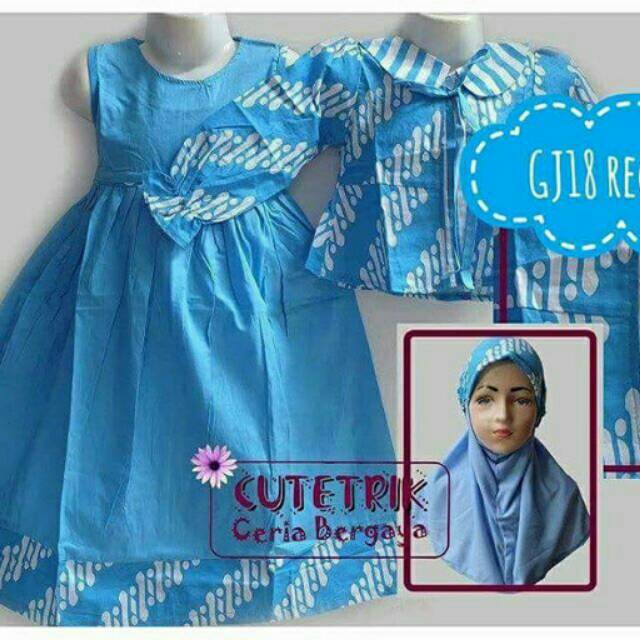 Baju Anak Muslim Set Jilbab Cutetrik Gamis Cutetrik Batik Blue
